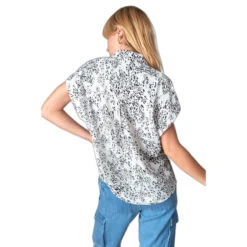 Dit Luz shirt heeft een vrouwelijke stijl door de vele details, zoals het luipaardmotief in blauwe en rose tinten, de zilverkleurige, aangepaste LTC-knoopsluiting en de knopen op de manchetten. Het hemd is licht doorschijnend.