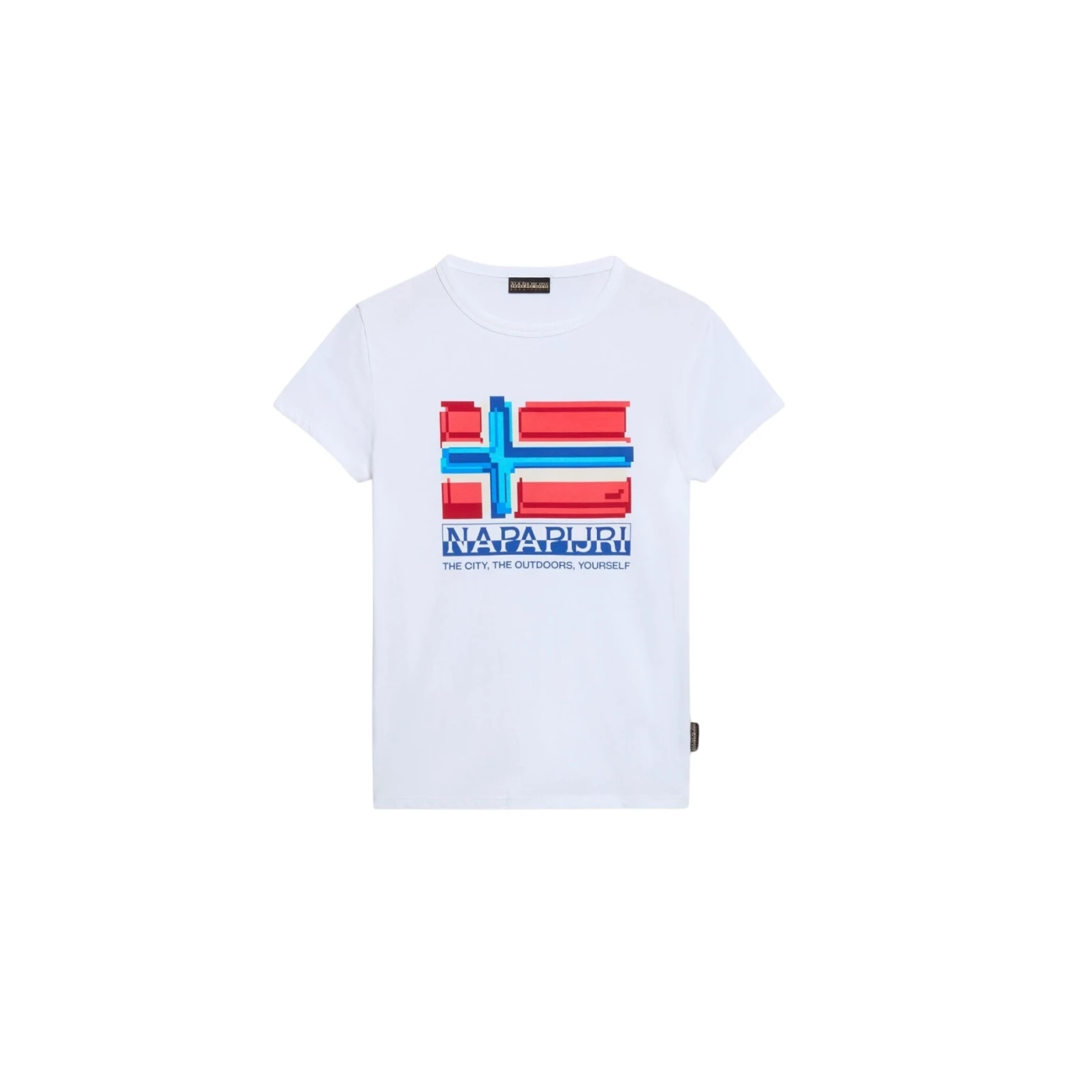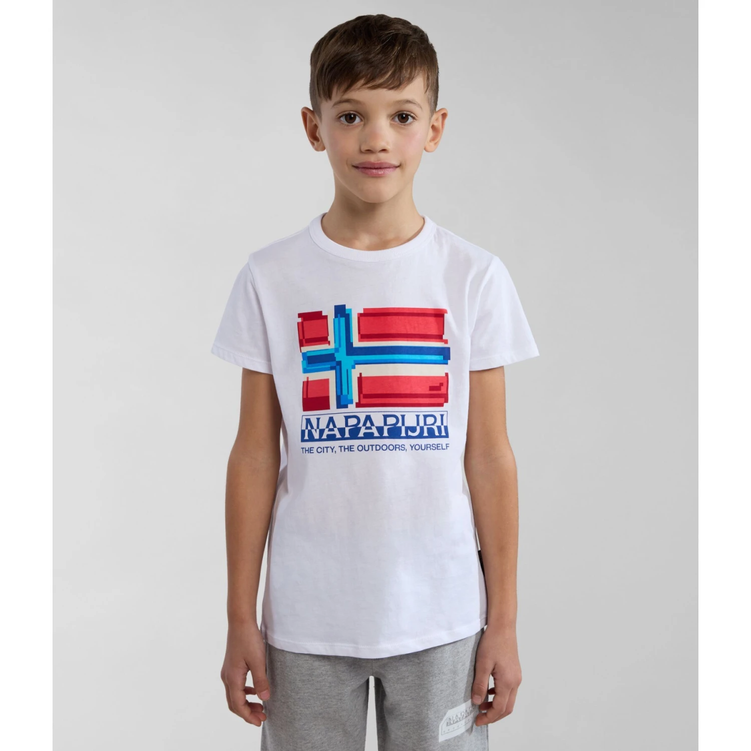 Het Liard kinder-T-shirt met korte mouwen is ideaal voor luie dagen, sportdagen of ontspannen weekenden. Het kan gemakkelijk alleen worden gedragen of in laagjes over een sweater of hoodie. Dit klassieke T-shirt van 100% katoen heeft een ronde hals en een opdruk van de Noorse vlag op Napapijri op de borst.