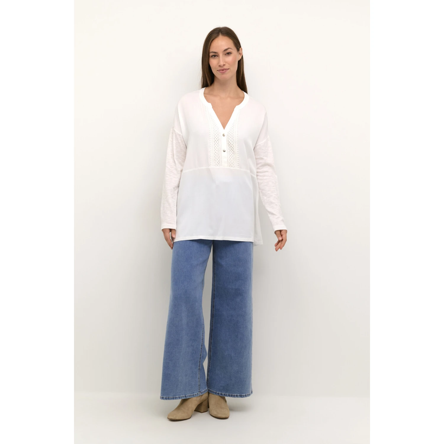 Kortom, de Cream Jajah blouse is de perfecte keuze voor vrouwen die zowel elegant als comfortabel willen zijn. Het tijdloze ontwerp, de uitzonderlijke kwaliteit en de kanten details maken het een must-have voor elke garderobe. Voeg deze blouse toe aan je collectie en je zult niet teleurgesteld zijn. Bestel nu en voeg een vleugje verfijning toe aan je stijl met de Cream Jajah damesblouse van Cream.