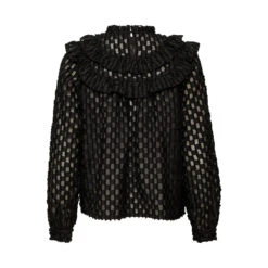 Deze blouse valt op door de subtiele, verfijnde details, zoals de V-hals en lange, uitlopende mouwen. Deze kleine details maken het verschil en voegen een vleugje elegantie toe aan dit tijdloze stuk.
